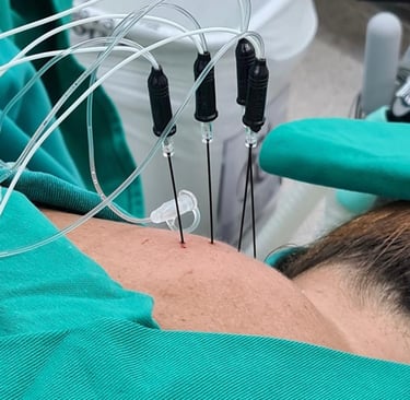 Esses procedimentos são guiados por fluoroscopia (raio-X em tempo real) ou ultrassom para garantir precisão e segurança. Duram em média 15 a 30 minutos e são feitos com anestesia local, sem necessidade de internação na maioria dos casos.